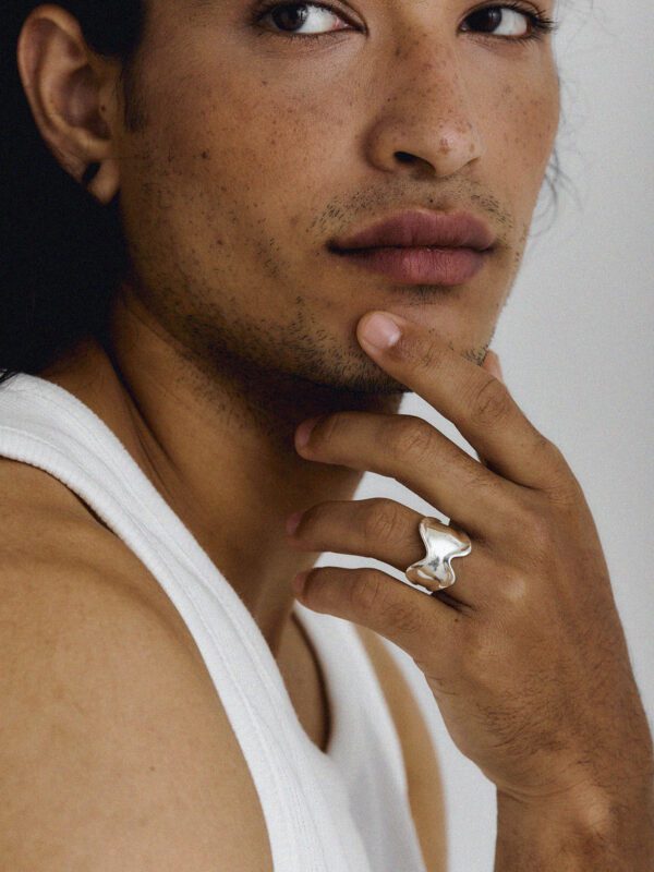 O Anel Sienna tem curvas e bordas fluidas. Seu design orgânico traz sutil sensualidade e conforto.