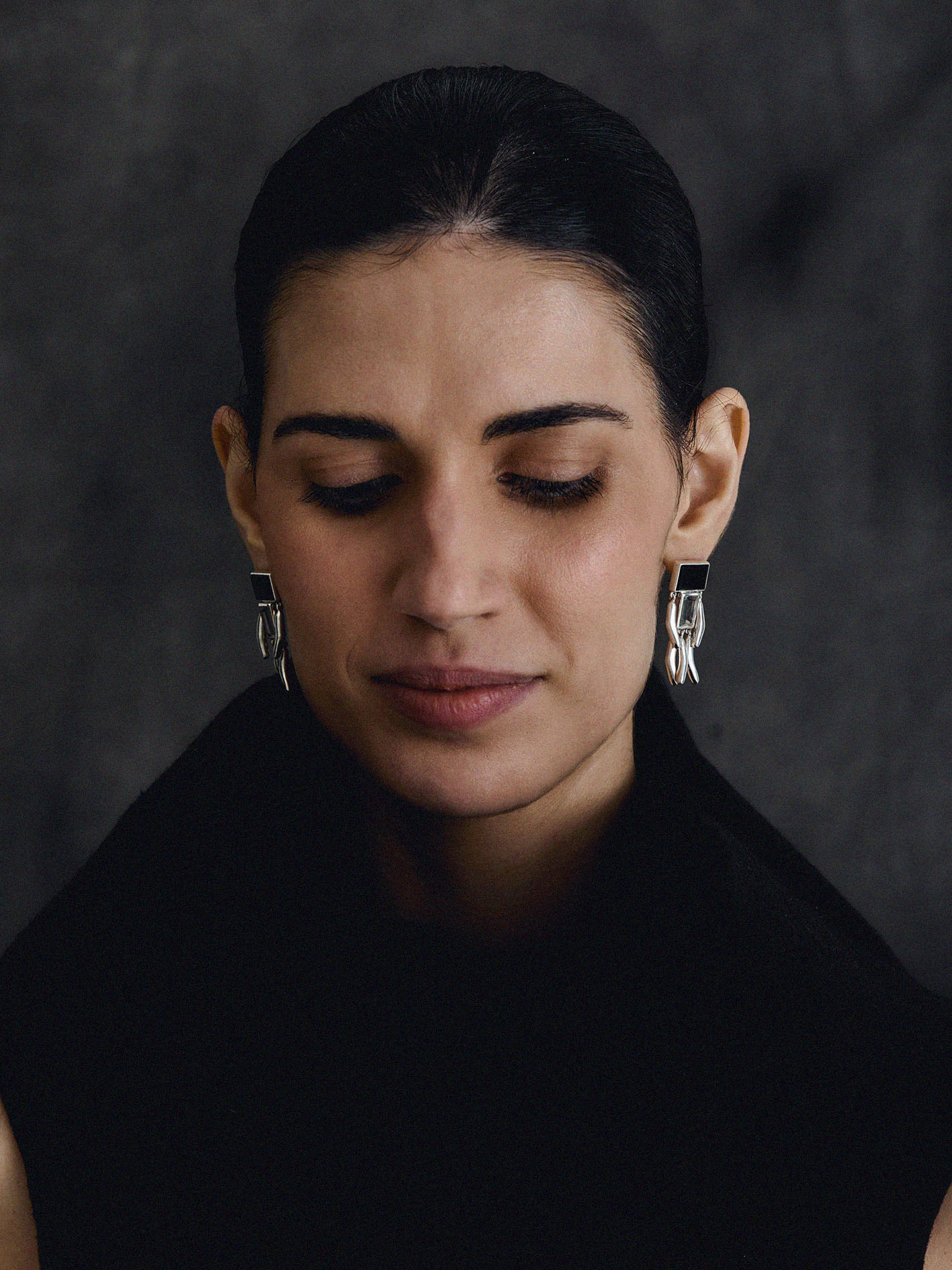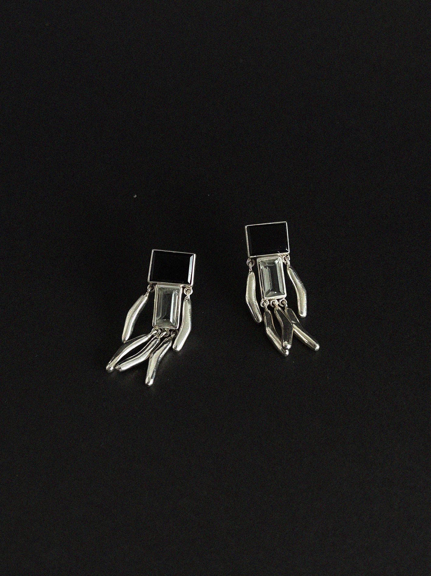 Um brinco chic e divertido, feito em prata 925 com quartzo negro e cristal.
