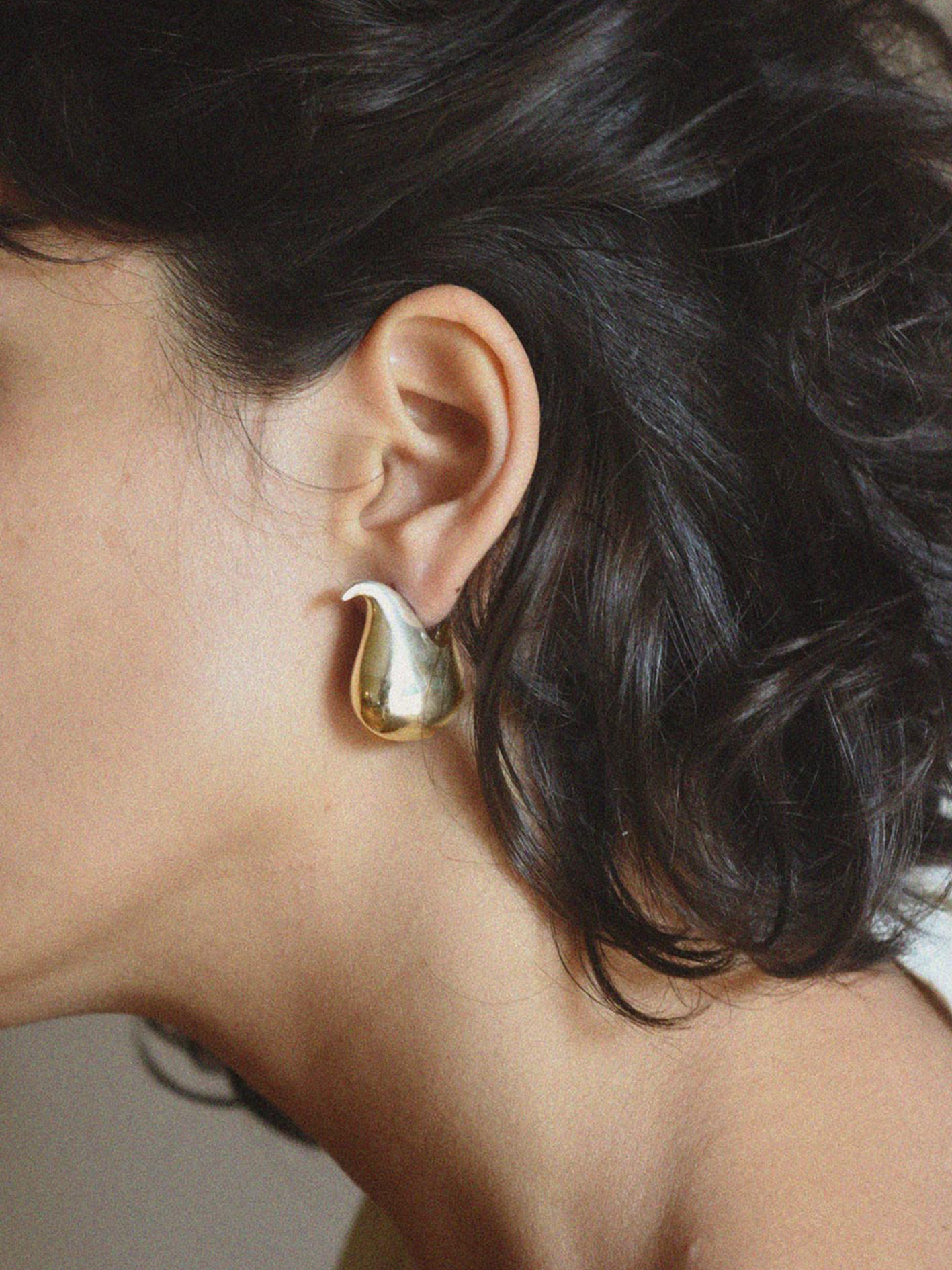 Brinco feito em prata 925 com banho de ouro e acabamento polido.